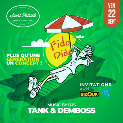 _Une fraîcheur neuve parmi nous_ #CQFD Ce *Vendredi 22 septembre*, un vent de fraîcheur, que dis je, de jouvence s'abattera sur nous. Pour l'incarner, FiDo DiDo, figure de nos belles années 90/2000 donc tu as compris le thème, en mode _chill&vibes_ posera son transat au SAINT-PATRICK. *DJ TANK* *DJ DEMBOSS* Pour un tour du monde musical intemporel Prends ton invitation et rejoins nous. _Plus qu'une génération, un concept_