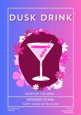 La DUSK DRINK ce déroulera ce vendredi 10 Mai au magnifique ROOFTOP THE MARK à Fort de France. Happy Hour de 18h à 20h