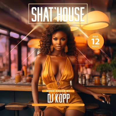 ‼️SHAT’HØUSE‼️ 🔊 Ton concept Shatta et House music tous les Mardis _*KOPP*_ te fera voyager 🔊 🎼Pour un tour du monde musical🎼 🌔Rdv dès 19h n’oublie pas qu’on ferme à _Minuit_. C’est ton afterwork bien sympathique entre amis. 🔸Welcome to _*« SHAT’HØUSE »_*🔸 Entrée gratuite 📞Infos/Résa: 0696194006 By Boukaaaa & Liliani