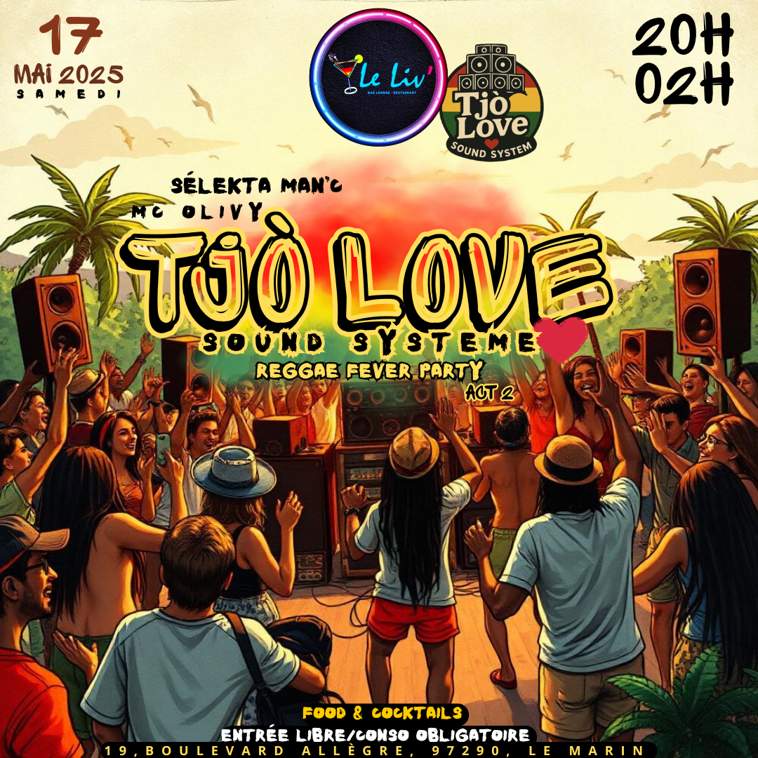 *LE LIV’BAR ET TJÒ LOVE sounds système* présente ❤️💛💚 TJÒ LOVE SOUND SYSTEME ❤️💛💚 REGGAE FEVER ACT 2 📆 SAMEDI 17 MAI 2025 📍LE LIV’ BAR ⏰20H-02H 🎧 Sélekta MAN’C & Mc OLIVY 🥗🍤FOOD & DRINK’S🍻🍹 on remets le reggae à l’honneur... EN TJÒ LOVE ❤️ EN TJÒ SON 💛 EN TJÒ RESPÉ 💚 entrée gratuite consommation OBLIGATOIRE... REGGAE VYBS ONLY🇧🇴🇧🇴
