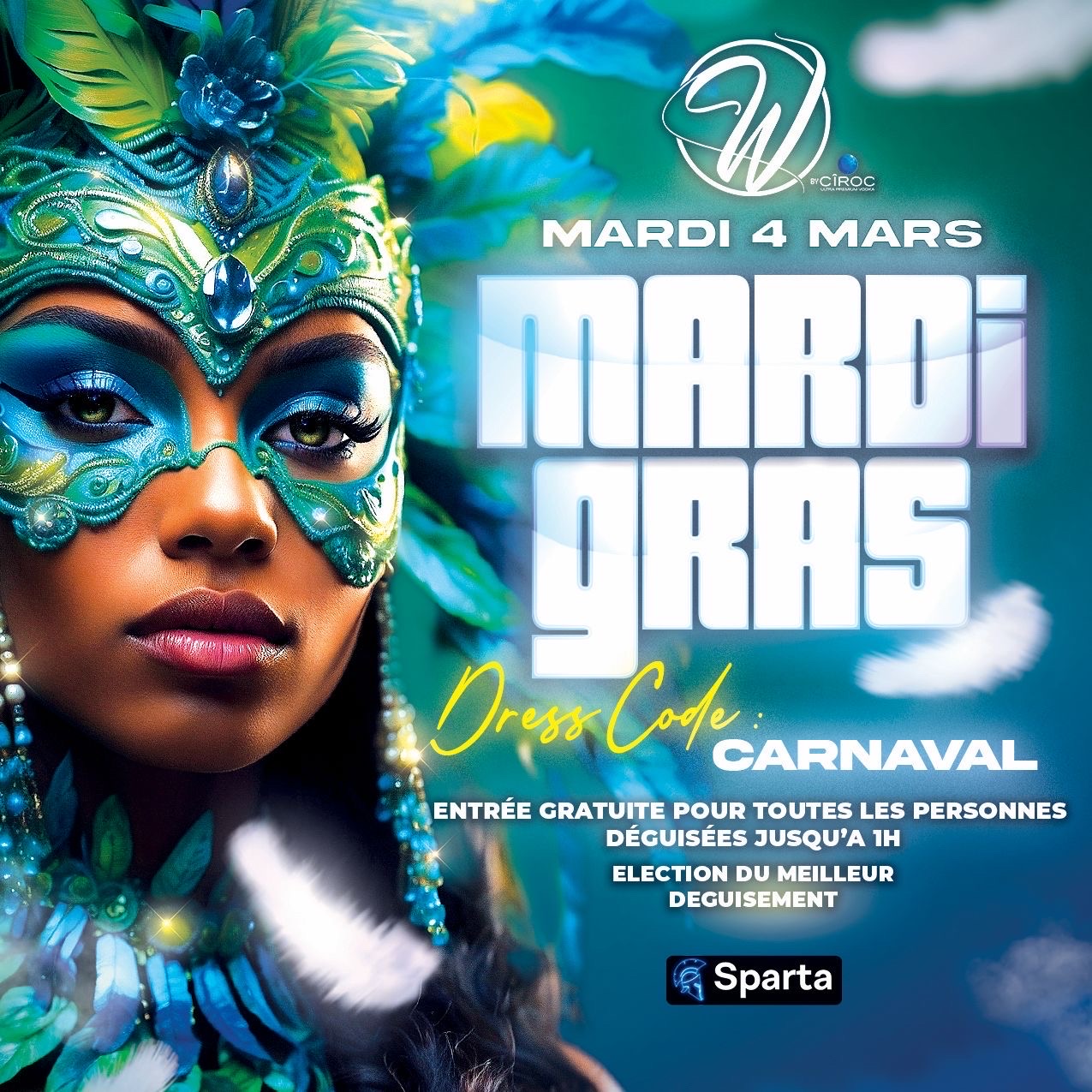 À l’occasion du Mardi Gras, le W Club t’invite à passer une soirée mémorable. Pour l’occasion l’entrée est gratuite pour tout le monde jusqu’à 1h du matin avec déguisement, élection du plus beau déguisement, premier prix une carte VIP pour toute l’année 2025.