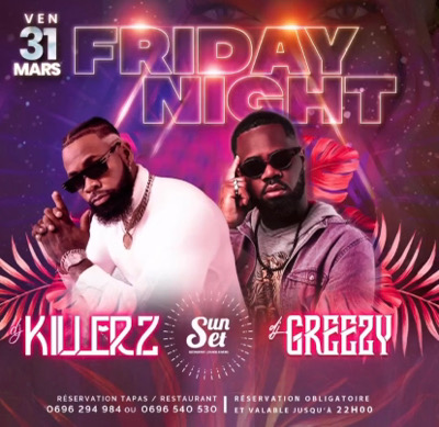 Sunset🔥🍾 DJ Killerz et DJ Greezy ! Réservation tapas/Restaurant : 0696294984 - 0696540530 Réservation obligatoire et valable jusqu’à 22h !
