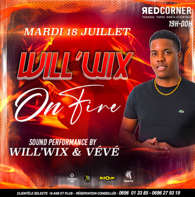 Ce MARDI dès 18h la *TEAM XS* et leurs *Hôtesses sexy* te convient au *REDCORNER* pour leur soirée WILL WIX On FIRE ! *Dj WILL WIX & VÉVÉ de Paris  * mettront un Maximum d'ambiance en mode Shatta ARRIVEZ TÔT . *Réserve Ton Salon dès maintenant* MANU 0696.013385