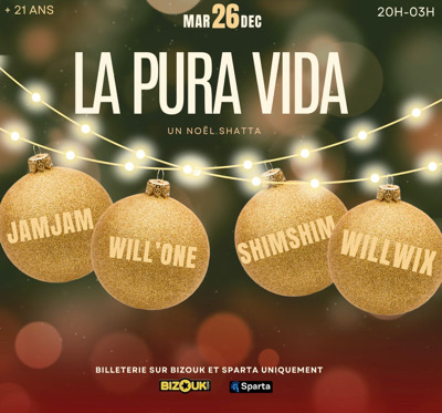 🎄 *La Pura Vida* 🎄 ou plutôt un _* NOËL SHATTA *_ 🎅? Le *26 Décembre* de _20H a 02H_ Un rendez-vous ! 🕐 Une seule adresse ! 🗺️ Le concept est simple tu viens accompagné de ton groupe d’amis et _avant 22h30_ les _*Patés salés et le shooter*_ est *OFFERT.*🥃 Pour profiter de ce moment et t’amuser comme il faut tu seras accompagné musicalement par *DJ JAMJAM* 🤹♂️ *DJ WILL’ONE*🤹♂️ *DJ SHIMSHIM*🤹♂️ *DJ WILWIX*🤹♂️ _Les magiciens de leurs générations.._🪄 Prends ton pass sur *Bizo...