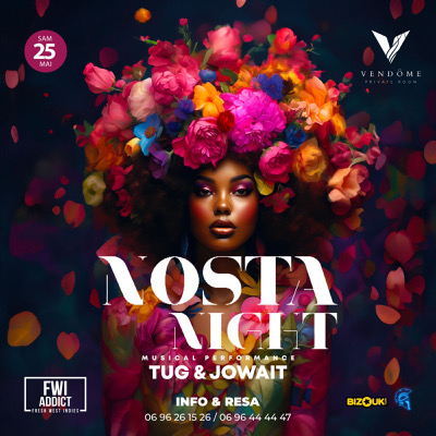 📍_*NOSTA NIGHT*_ Au _VENDÔME_ ce SAMEDI 25 Mai , dès Minuit. On se retrouve au _*VENDÔME*_ en mode Nosta. Avec vos DJs préférés: _*TUG - JOWAIT*_ ♦️Trêve de bla-bla récupére d’ores et déjà ton invitation valable jusqu’à 2h00 ou ton pass sur Sparta, on s’occupe du reste. _*Pense à réserver ta table*_ :0696261526. Places limitées _Pa Di ou pa té sav !!!_ 😉