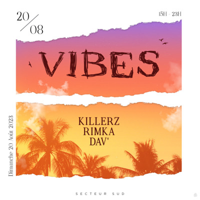 VIBES Après une longue absence...Que dites-vous de se retrouver lors d'un coucher de soleil et dans une ambiance carribbean music ? •• Informations DIM 20 AOUT 15H00-23H00 MQ|SUD •• Music KILLERZ|RIMKA|DAV •••••••••••••••• VIBES|Open your mind to the VIBES| ••••••••••••••••