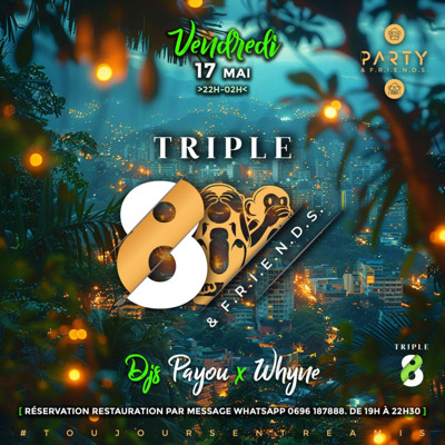 TRIPLE 8 AND F.R.I.E.N.D.S. NOUVELLE ÉDITION On a rendez-vous le VENDREDI 17 MAI 2024 à partir de 21h30 au TRIPLE 8 Si tu reçois le message, tu connais le principe C’est #ToujoursEntreNous #ToujoursEntreAmis. Avec un duo d'exception aux platines : DJ PAYOU & DJ Whyne PAS DE LISTE TRIPLE 8 (ex Bout Du Monde) - Ducos Covoiturage fortement conseillé Restauration possible ...
