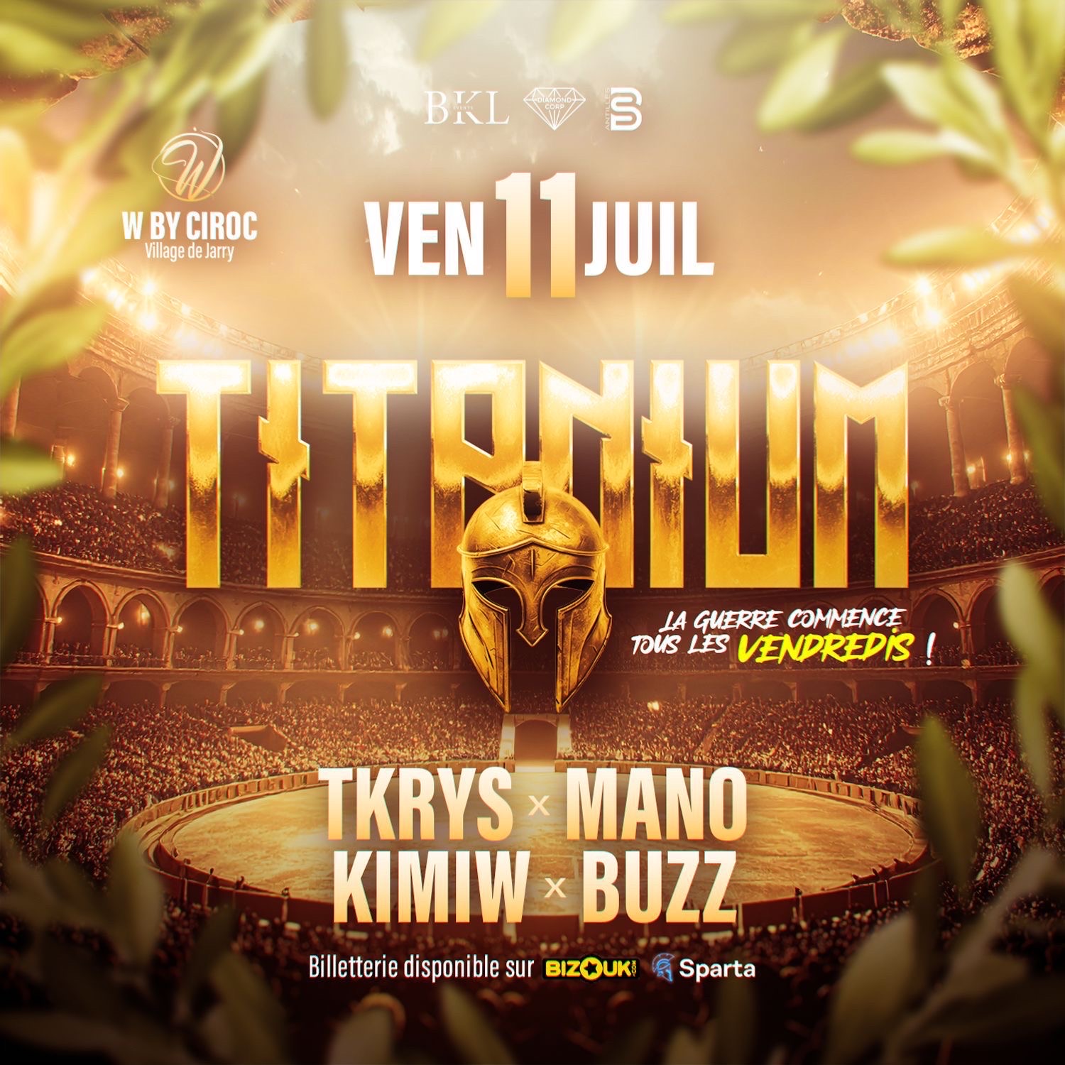 TITANIUM – Tous les vendredis de l’été BKL events, B2S et Black Diamond te donnent rendez-vous chaque vendredi au W Club by Cîroc pour plonger dans l’univers TITANIUM : une soirée unique, entre puissance, ambiance et pure euphorie ! Dès ton arrivée : “L’Épreuve du Guerrier” – un shooteur offert aux 50 premiers chaque vendredi. Sois dans les premiers, sois dans le feu Aux platines : afro, bouyon, dancehall, trap… Des transitions de folie, du son lourd, juste ce qu’il faut pour t’amb...