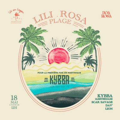 LILI ROSA PLAGE Samedi 18 Mai Plongez dans l'élégance et l'excitation d'un événement hors norme sur les rives du Cap Est, orchestré par deux restaurants incontournables de l’ile : Lili Au Lagon et le Boa Rosa. Pour la première fois, les vagues accueilleront les rythmes envoûtants du DJ international en vogue KYBBA, créant une ambiance incomparable où l’esprit festif se marie à la musique envoûtante dans une atmosphère solaire. Music by : DJ DAV SCARSAVAGE DJ LION À partir de 12h.