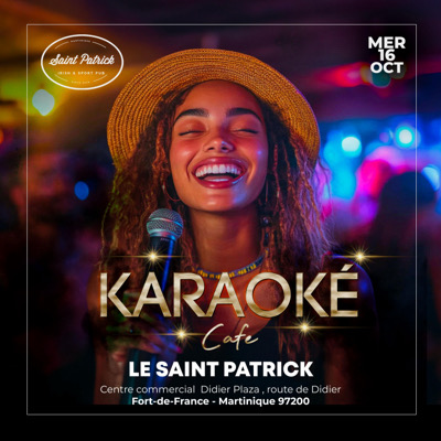 Rejoignez-nous pour une nuit de karaoké pleine de fun, de musique et de bonnes vibes ! Venez chanter vos hits préférés, seul ou avec vos amis. Le karaoké démarre à 19h00, arrivez tôt. Entrée libre Rejoignez-nous au Saint-Patrick, au centre commercial Didier Plaza à Fort-de-France. Pour plus d’infos, appelez le 0696863950