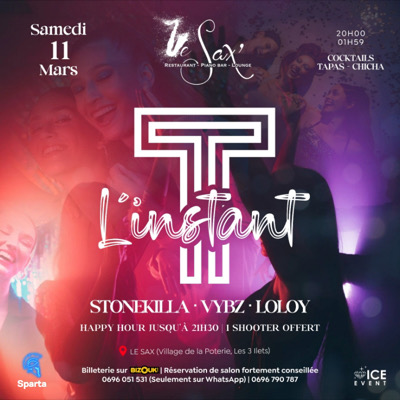 *L'instant T...* Top chrono ⏱️ 👯🏽♂️ 06h00 de bonne musique, de good vibes, l'instant d'un pur moment de détente avec 🌸 STONEKILLA - VYBZ - LOLOY 🌸 🎁 Happy Hour jusqu'à 21h30 🥃 1 SHOOTER OFFERT 🌐 📲 0696 051 531 - 0696 790 787 (Seulement sur WhatsApp)