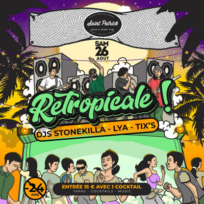RÉTROPICALE ce SAMEDI 26 Août Tu as plus de 24 ans, tu es nostalgique des bonnes soirées à l'ancienne et veux te retrouver avec des gens de ta génération tout en écoutant du bon son?! *Cette soirée est pour toi !!! DJ STONEKILA & LYA & DJ TIX’S pour une ambiance tropicale mix music garantie coktails de bienvenue offert avant 21h30 Réserve dès maintenant ta place ou ton carréGolden VIP Info ou resa : 0696 67 00 60 C.C Didier Plaza FdF . 19h - 02 h Évent réservé exclusivement a...