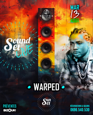 Ton rendez-vous du mardi de ces vacances 2024... c'est le SOUNDSET LIVE. Le mardi 13 août 2024, préparez-vous à vivre une soirée inoubliable ! Le talentueux chanteur de reggae, WARPED, sera en concert live au Sunset. Venez vibrer au rythme de ses mélodies envoûtantes et de ses paroles inspirantes. Ne manquez pas cette occasion exceptionnelle de découvrir ou redécouvrir WARPED sur scène, dans une ambiance chaleureuse et festive. Son hit : "Sa ka bay" compte déjà plus d'un million de vues sur ...