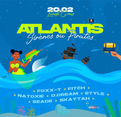 Lundi 20 février rejoins sur la plage des Alizés au Carbet pour une bataille d'eau mémorable Avec Foxx T, Natoxie, Fitch, DDream, Style, Seade et Skaytah, venus spécialement de Guadeloupe, pour surveiller la baignade Thème : Sirène (coquillage, strass, paillettes, écailles, etc.) Pirate (cache-oeil, crochet, chapeau, etc.) Munis toi de ton fusil à eau VIDE, enfile ton plus beau maillot et viens pour une bataille entre deux mondes En partenariat avec Amigo et HSE Evènement interdit aux...