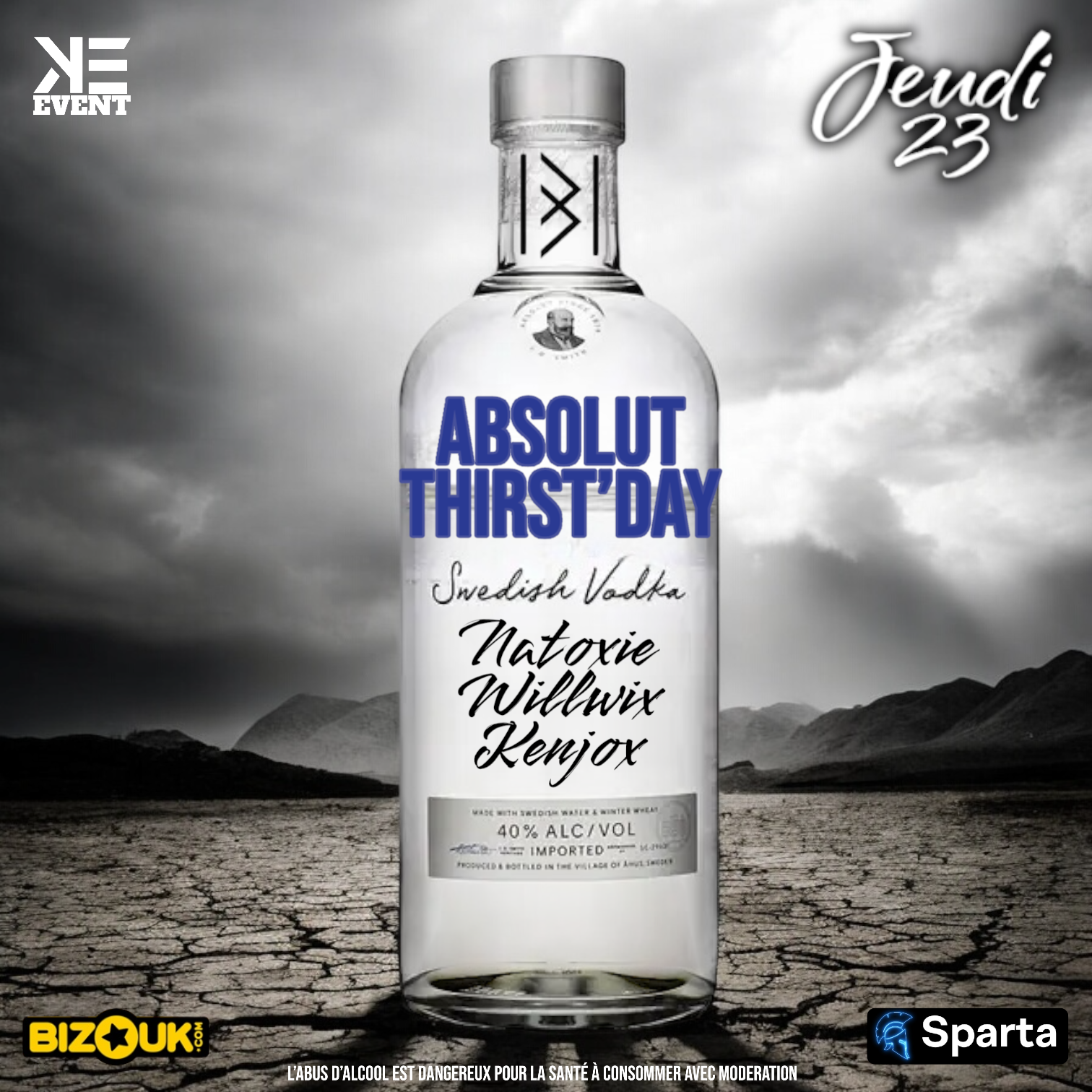 Jeudi 23 Janvier ABSOLUT THIRST’DAY RENDEZ-VOUS AU BLACKWOOD POUR UN AFTERWORK EN MODE VOLKA AU PLATINE: NATOXIE WILLWIX KENJOX ET POUR L’OCCASION ON VOUS METS BIEN JUSQU’A 23H c’est HAPPY HOUR DEUX BOUTEILLES DE VODKA POUR 160€