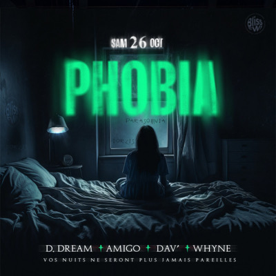 BLISS Fwi présente Phobia, Vos nuits ne seront plus jamais pareilles… Dans cet hôpital abandonné, vos cauchemars les plus profonds prennent vie. On y raconte que ceux qui y dormaient étaient souvent victimes de phénomènes étranges : paralysie du sommeil, somnambulisme violent, terreurs nocturnes... et certains ne se sont jamais réveillés. D.DREAM le dorlis DAV’ le médecin de l’horreur AMIGO le somnambule possédé WHYNE l’infirmier macabre vous feront basculer dans l’horreur. La frontièr...