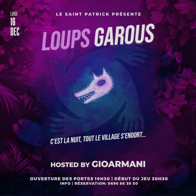Rejoignez-nous pour une soirée captivante autour du célèbre jeu Loup-Garou ! Venez seul(e) ou avec vos amis. Que vous soyez un redoutable loup-garou, un villageois stratège, ou un voyant à l’affût des secrets, cette soirée promet suspense, rires et défis. Parties animées par Gioarmani Ouverture des portes à 19h30 Début du jeu à 20h30 St Patrick’s Bar : Cc Didier Plaza - Route de Didier - FdF Entrée gratuite Info et réservation au 0696 86 39 50