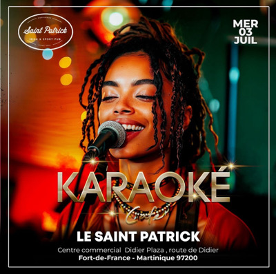 saintpatrick_pub Mercredi 3 Juillet † BRILLEZ SOUS LES PROJECTEURS AU SAINT-PATRICK pour le dernier Karaoké de la saison ! Rejoignez-nous pour une soirée de pur divertissement et de performances vocales mémorables! Rassemblez vos amis et préparez-vous à eblouir la scène avec vos chansons préférées! Le karaoké démarre à 19h00, alors venez tôt pour réserver votre moment de gloire! FREE Entrée libre Rejoignez-nous au Saint-Patrick, au centre commercial Didier Plaza à Fort-de-France. Pour plus d'inf...