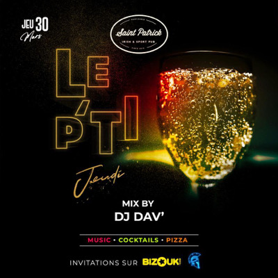 đžWelcome to _*« LE PâTIT JEUDI »_*đž âŒïž 20h-00h âŒïž *DJ DAVâ* On Fire !!!! đSt-Patrick Et pourquoi pas ? Ton Afterwork bien sympathique entre amis .đđœ _On va sâmettre bien.._đ đïžInvitation sur bizouk avant 21h30 : https://my.bizouk.com/le-pti-jeudi-12 Ou sur lâAppli Sparta đInfos/RĂ©sa: 0696194006 Saint Patrick : centre commercial Didier plaza Ă Fdf.