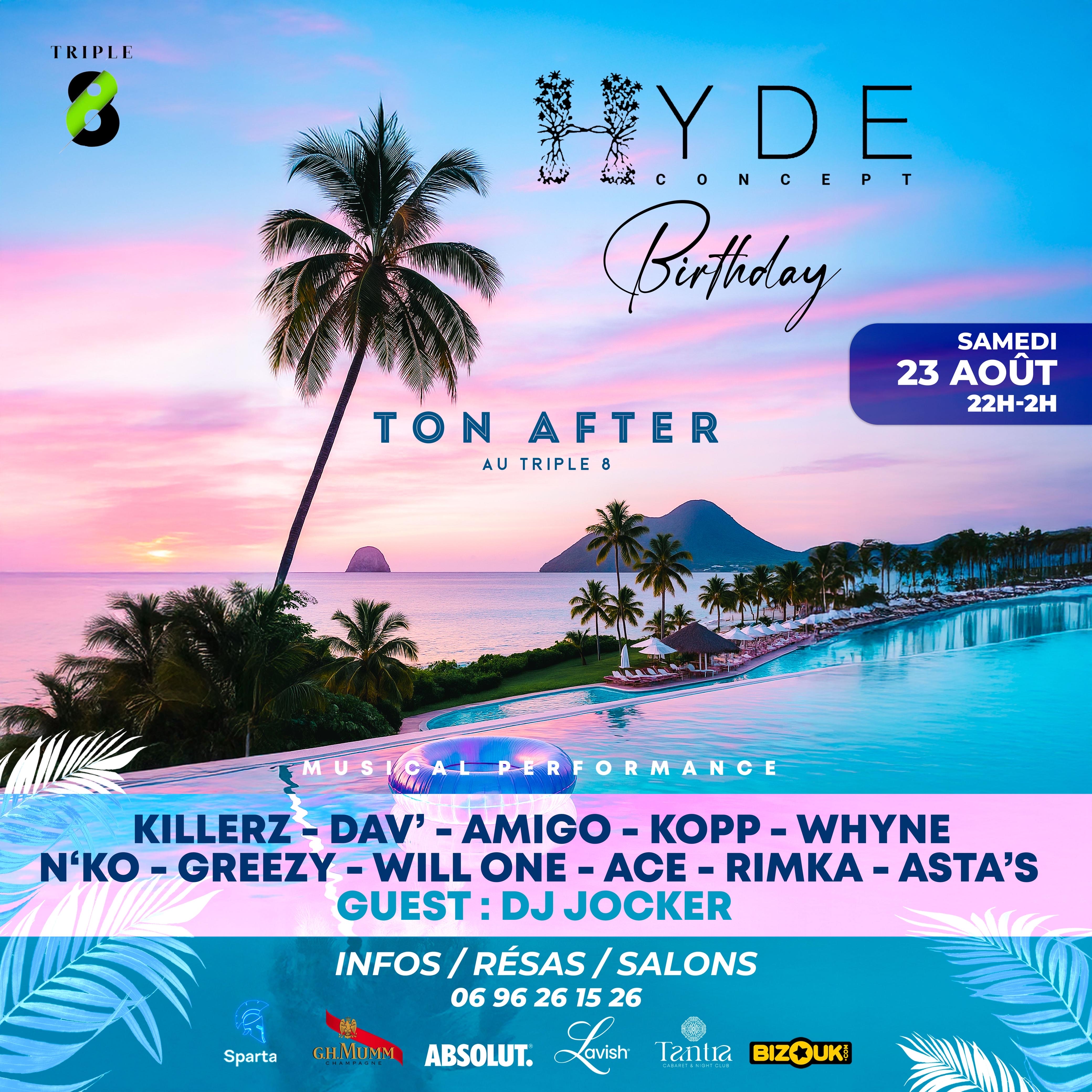 ⚠️CHANGEMENT DE LIEU ⚠️ 💦🎉 HYDE BIRTHDAY – POOL PARTY 🎉💦 Samedi 23 août, viens fêter l’anniversaire de la Hyde dans un cadre exceptionnel ! 📍 Black Diamond 🕒 14h – 22h 🌊 Pool party : soleil, musique, cocktails et ambiance estivale au bord de la piscine. 🎧 On t’a choisi les meilleurs DJ de l’île pour te faire vibrer toute la journée. Et pour les fêtards infatigables… 🔥 AFTER OFFICIEL au Triple 8 🕒 22h – 2h 💃 Soirée club pour continuer à danser jusqu’au bout de la nuit ! 🎟 CHOISIS ...