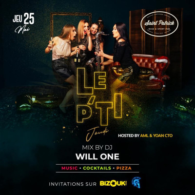 LE PTI’ JEUDI By AML & YOAN CTO. Ton Rdv du Jeudi est de retour ! Au ՏᗩӀᚺⲦ ⰐᗩⲦᖇӀꓚᛕ on prend les mêmes & on recommence ! COCKTAILS, CHAMPAGNE TAPAS ESPACE VIP SERVICE CHICHA Du bon son, de la bonne Vibes, à partir de 18h DJ WILL’ONE pour agrémenter tout ça… Réservation obligatoire ! INVITATION (Valable pour 1 personne avant 21h)