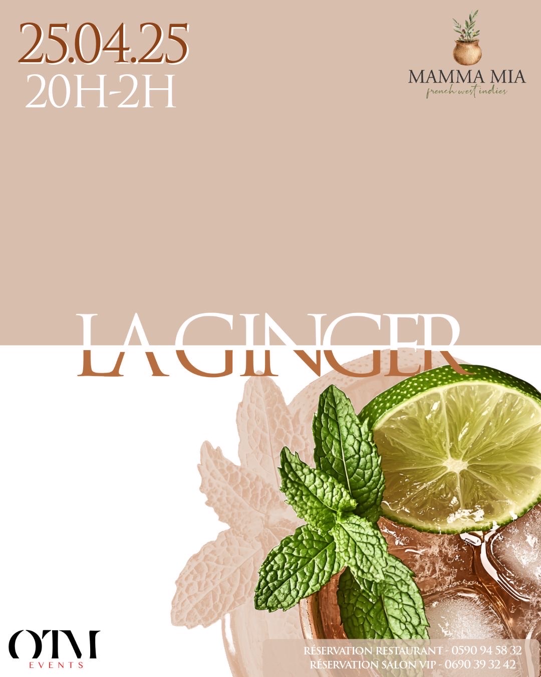 Hello la team ! Après deux éditions magnifiques, OTM EVENTS et LE MAMMA MIA remettent ça avec une troisième édition encore plus chaude de leur concept signature : « LA GINGER » ! Bloquez la date : vendredi 25 avril 2025, à partir de 20h, au restaurant Le Mamma Mia. 📍 Une soirée explosive vous attend, portée par la star des boissons : le Ginger Beer ! Au menu : les grands classiques Moscow Mule, Mexican Mule, London Mule, Caribbean Mule, et peut-être quelques nouvelles surprises à découvrir…...