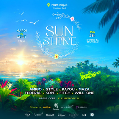 Ne manquez pas cette occasion unique de cĂ©lĂ©brer lâĂ©tĂ©, la beautĂ© des fleurs et la magie de la musique lors de la âSunshineâ Plongez au cĆur dâun paradis floral (Lieu tenu secret - Secteur Sud) qui combine la chaleur du soleil estival Cette Ă©dition "EmmĂšne ta bouteille" apportera une ambiance chaleureuse et magique PrĂ©parez-vous Ă vivre une expĂ©rience musicale inoubliable animĂ©e par Djs : Amigo x Style x Payou x Maza Federal x Kopp x Fitch x Will One Enfilez vos plus belles tenues au...