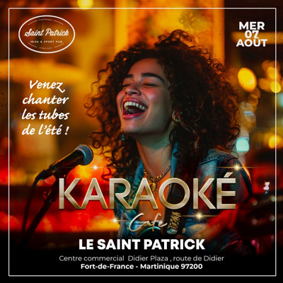 Rejoignez-nous pour une nuit de karaoké pleine de fun, de musique et de bonnes vibes ! Venez chanter vos hits préférés, seul ou avec vos amis, et profitez de l'ambiance festive de l'été. Le karaoké démarre à 19h00, arrivez tôt. Entrée libre Rejoignez-nous au Saint-Patrick, au centre commercial Didier Plaza à Fort-de-France. Pour plus d’infos, appelez le 0696863950