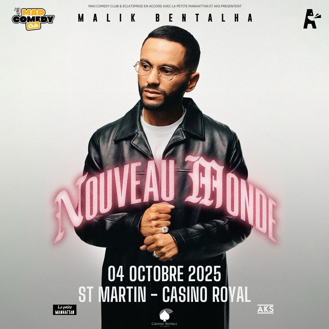 MAD COMEDY CLUB avec MALIK BENTALHA ✨ 📍Samedi 4 Octobre 2025 à 21h au Casino Royal : 🔥 MALIK BENTALHA débarque en exclusivité et pour la première fois sur Sxm au MAD COMEDY CLUB pour un One Man Show explosif! MAD COMEDY CLUB & ECLATSPROD EN ACCORD AVEC LA PETITE MANHATTAN ET AKS PRESENTENT MALIK BENTALHA Après le succès de la première édition, le Mad Comedy Club revient en force à partir du 4 octobre avec une figure incontournable de la scène française , Malik BENTALHA 👉 Qui est Malik B...