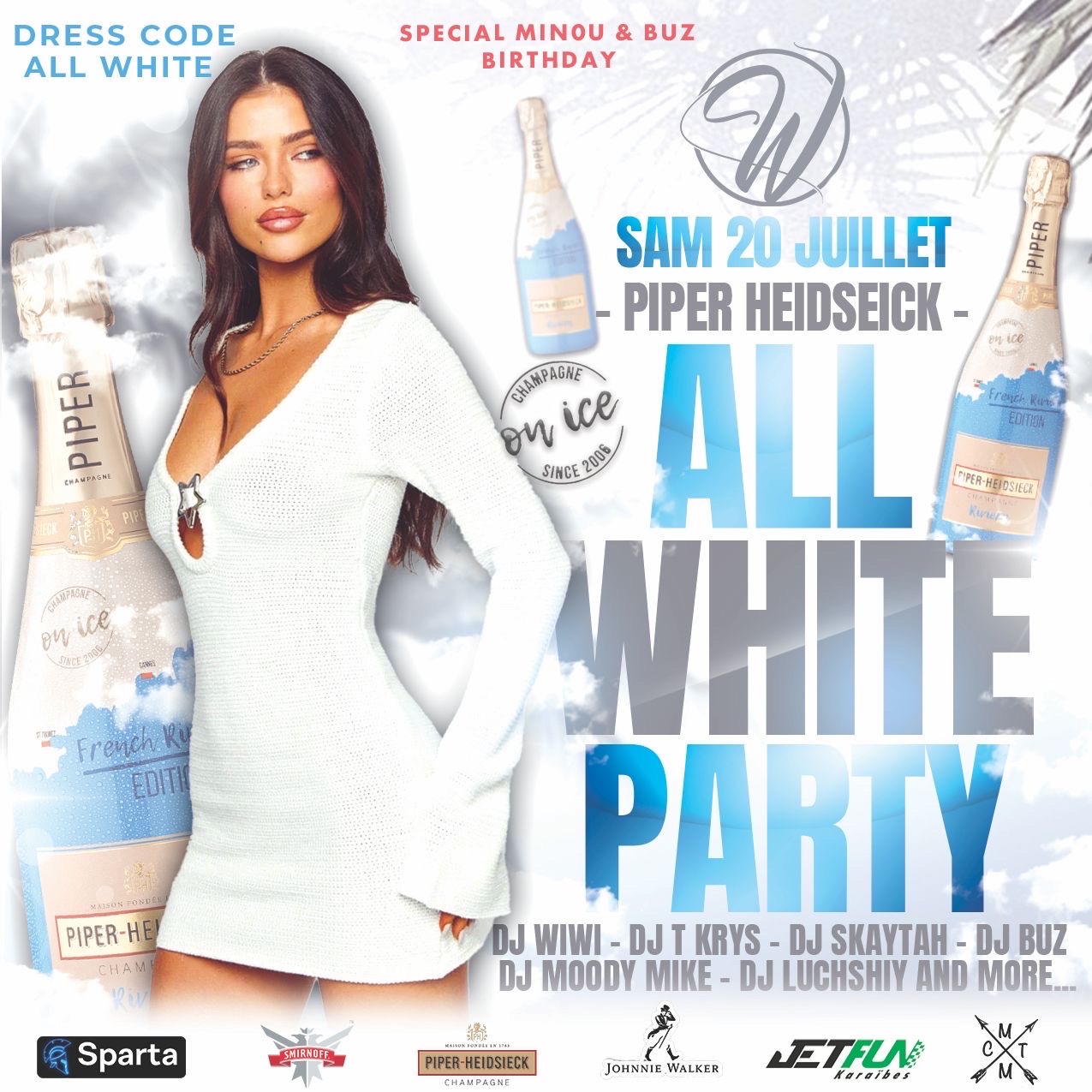 Place privé pour le carré VIP réservé à l’occasion de l’anniversaire de Minou & Buz. 50€ la place pour les femmes. 70€ la place pour les hommes. Réservé votre place sur Sparta puis faites scanner votre QR code a l’entrée. Un bracelet VIP vous sera remis pour pouvoir accéder au carré.
