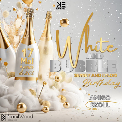 La WHITE AND BUBBLE revient le Vendredi 17 Mai 2024 SEYSEY & LYLOO BIRTHDAY Dress Code : White and Gold (CHIC) Viens passer un moment de pure plaisir autour de bons cocktails et de jolies coupes de champagnes Music by : AMIGO & SKOLL