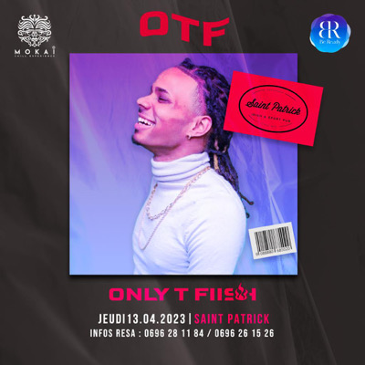 _ *CE JEUDI 13 AVRIL* dès 19h_ _📍 *SAINT-PATRICK PUB* ➖➖➖➖➖➖➖➖➖➖➖➖ ✨ 💎 *ONLY T-FIISH (OTF) *💎✨ ➖➖➖➖➖➖➖➖➖➖➖➖ Pour son passage éclair en Martinique, pour une fin de vacances de folie, dj _T-Fiish_ te donne Rdv pour sa grande 1ère au Saint-Patrick🔥🔥🔥 🔶 *DJ T-FIISH*🔱 & Guest. 🍹 *_HAPPY-HOUR SUR LES CAÏPIS AVANT 20h_*🍸 ➖➖➖➖➖➖➖➖➖➖➖➖ ⚠🎁 *PASS DISPONIBLES Sur BIZOUK* ▶️ https://my.bizouk.com/otf-only-t-fiish-jeudi ➖➖➖➖➖➖➖➖➖➖➖➖ *Réservation/liste 😗 0696281184 // 0696 26 15 26*