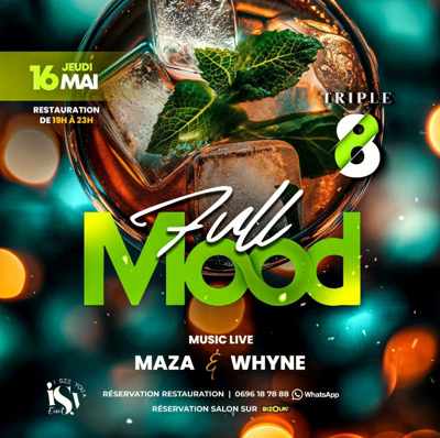 JEUDI 16 MAI ton rdv du jeudi de 18h30 à 00h!! Full Mood •••••••••••••••••••••••••• #OuvertureDesPortes 18h30 Restauration à table disponible de 18h30 à 21h30 puis snacking de 21h30 à 00h TRIPLE8 (ex Bout du Monde) TENUES ET ESPRITS CORRECTS EXIGÉS; LA DIRECTION SE RÉSERVE LE DROIT D'ENTREE. Il est conseillé d'arriver tôt car une invitation ne garantit pas le droit d'accès et privilégier le covoiturage