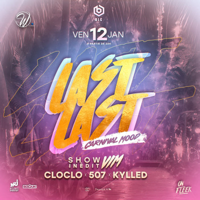 Vendredi 12 JANVIER à partir de 23h On te donne rdv au *W CLUB* La **LAST LAST ** revient avec du très LOURD En mode CARNIVAL MOOD Pour bien commencer cette période carnavalesque Le groupe VIM en showcase Et pour vous ambiancer durant la soirée un plateau de dj de ouf Music by : - 507 -KYLLED - CLOCLO INFOLINE RESA whatsaap 0690329894