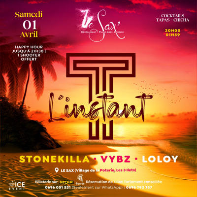 Rejoins le cercle de L'instant T... Top chrono pour l'acte 4 ! 06h00 de bonne musique, de good vibes, l'instant d'un pur moment de détente avec STONEKILLA - VYBZ - LOLOY Clientèle multigénérationelle Happy Hour jusqu'à 21h30