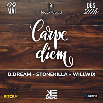 La Carpe Diem Ton rendez-vous du Jeudi 09 Mai 2024 « Cueille le jour présent sans te soucier du lendemain » Et si le temps d’une soirée plus rien ne comptait. Oublie tous tes soucis et vient savourer l’instant au BLACKWOOD avec au platine: D.DREAM STONEKILLA WILLWIX tenue et esprit correct exigé