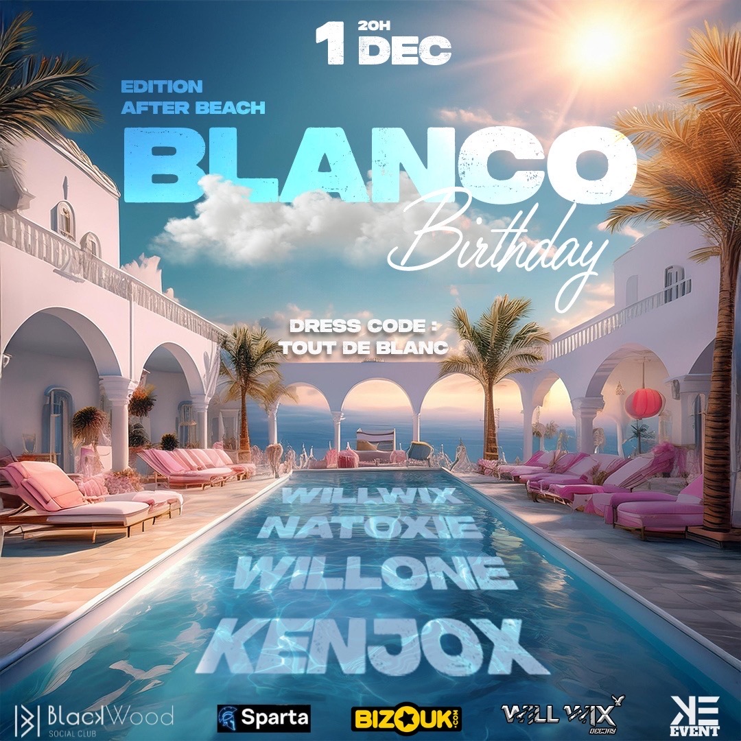 Dimanche 1er Décembre BLANCO BIRTHDAY - AFTER BEACH Préparez-vous à une soirée unique pour célébrer comme il se doit l’anniversaire de Blanco ! Un plateau DJS de malade: WILLWIX NATOXIE WILLONE KENJOX RECUPERE VITE TON PASS