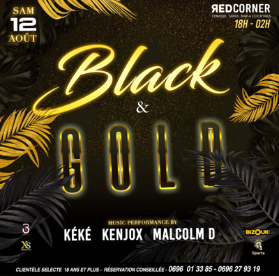 * SAMEDI 12 AOUT* dès 19h la *TEAM XS* et leurs *Hôtesses sexy* te convient au *REDCORNER* pour leur soirée * BLACK & GOLD * Hosted by BLANKO *Dj KÉKÉ, Dj KENJOX et Dj MALCOM D * vont mettra un Maximum d'ambiance en mode Shatta ARRIVEZ TÔT . *Réserve Ton Salon dès maintenant* MANU 0696.013385 _ La direction se réserve EXCLUSIVEMENT le droit d'entrée._