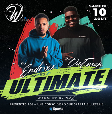 ULTIMATE La ULTIMATE fait sont retour avec les 3 DJ les plus électriques de leurs générations ! 🔥 On va faire le tour du monde, donc rendez-vous samedi 10 août, au W by ciroc !! 💥 Tarifs: Phase 1 : 10€ avec conso offerte valable jusqu’à 00h00 Phase 2 : 15€ avec conso offerte, valable jusqu’à 00h00. Phase 3 : 15€ entré simple valable jusqu’à 00h30. Phase 4 : 20€ entrée valable jusqu’à 1h. Réservation de table au 0690 50 35 59. Tenue correcte exigée. La sécurité se réserve le droit d’...