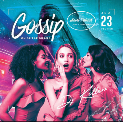 Après un carnaval bien mouvementé retrouve nous jeudi à la *GOSSIP* au *Saint-Patrick* pour faire le bilan tout en douceur ® * ( ou pas ) . * DJ KILLERZ * se chargera de l'ambiance ! *Infos ou résa de tables *: 0696194006 par WhatsApp Happy Night . Happy Party .