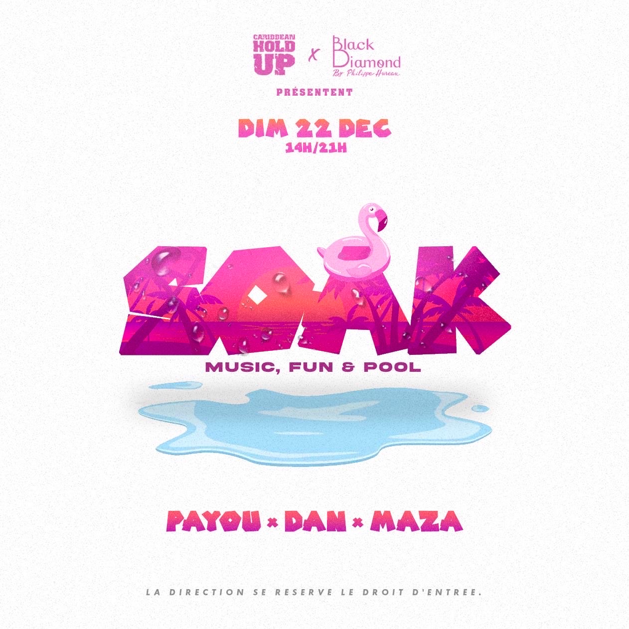 Hello la Team ! C'est encore nous ! Caribbean Hold Up Tu connais déjà le principe Good Caribbean Music avec Good People dans une Good place! SOAK Your Music & Fun Pool Party Viens nous rejoindre MAZA, DAN & PAYOU ce Dimanche 22 Décembre au bord de la piscine du Black Diamond en mode Good Vibes. Pour se rafraîchir, 500 floups offerts et bien d'autres surprises ! FOOD & DRINKS disponible et notamment notre cocktail XXL à partager entre amis. Horaire : 14h - 21h Lieu: Black Diamond Dr...