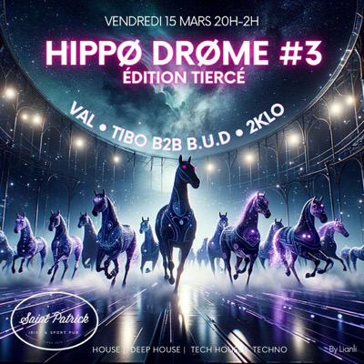 —-🥃☘️SAINT PATRICK🍀🥃—- 🖤🍸🐎TIERCE ÉDITION - HIPPØ DRØME #3🐎🍸🖤 🍀Troisième départ de ton grand le plus hippique et épique ce vendredi 15 mars pour l’édition TIERCÉ !!! Tirage au sort et cadeaux à gagner pour les vernis d’entre vous !☘️ 🎶🎵VAL - TIBO nos jockeys 🏇favoris reprendront les rênes encore et 2KLO notre nouvelle arrivante dans le box de départ sera mise à l’honneur pour mettre du liant entre la house-deep house et la techno plus sauvage🎶🎵 💣Vous aurez également droit à un B...