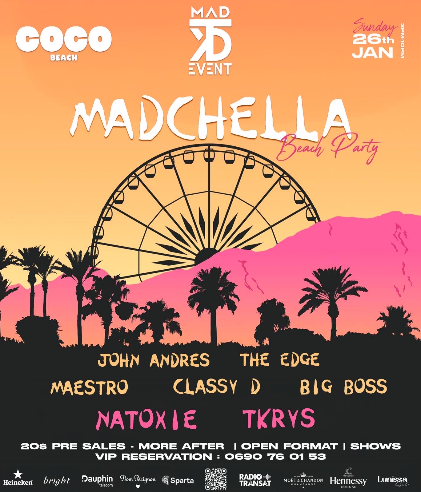 PREMIÈRE ÉDITION DE LA MADCHELLA AU COCO BEACH ✨ 📍Le dimanche 26 janvier, MAD EVENTS vous invite à découvrir un tout nouveau format : La MadChella. Inspirée de la célèbre Coachella, ce festival iconique connu pour son esprit bohème et son ambiance musicale open format, cette première édition se tiendra au Coco Beach, sur la magnifique plage de la Baie Orientale. @cocobeach Cette soirée marquera non seulement la première édition de La MadChella, mais aussi l’anniversaire de Yohan (aka Kuzko)...