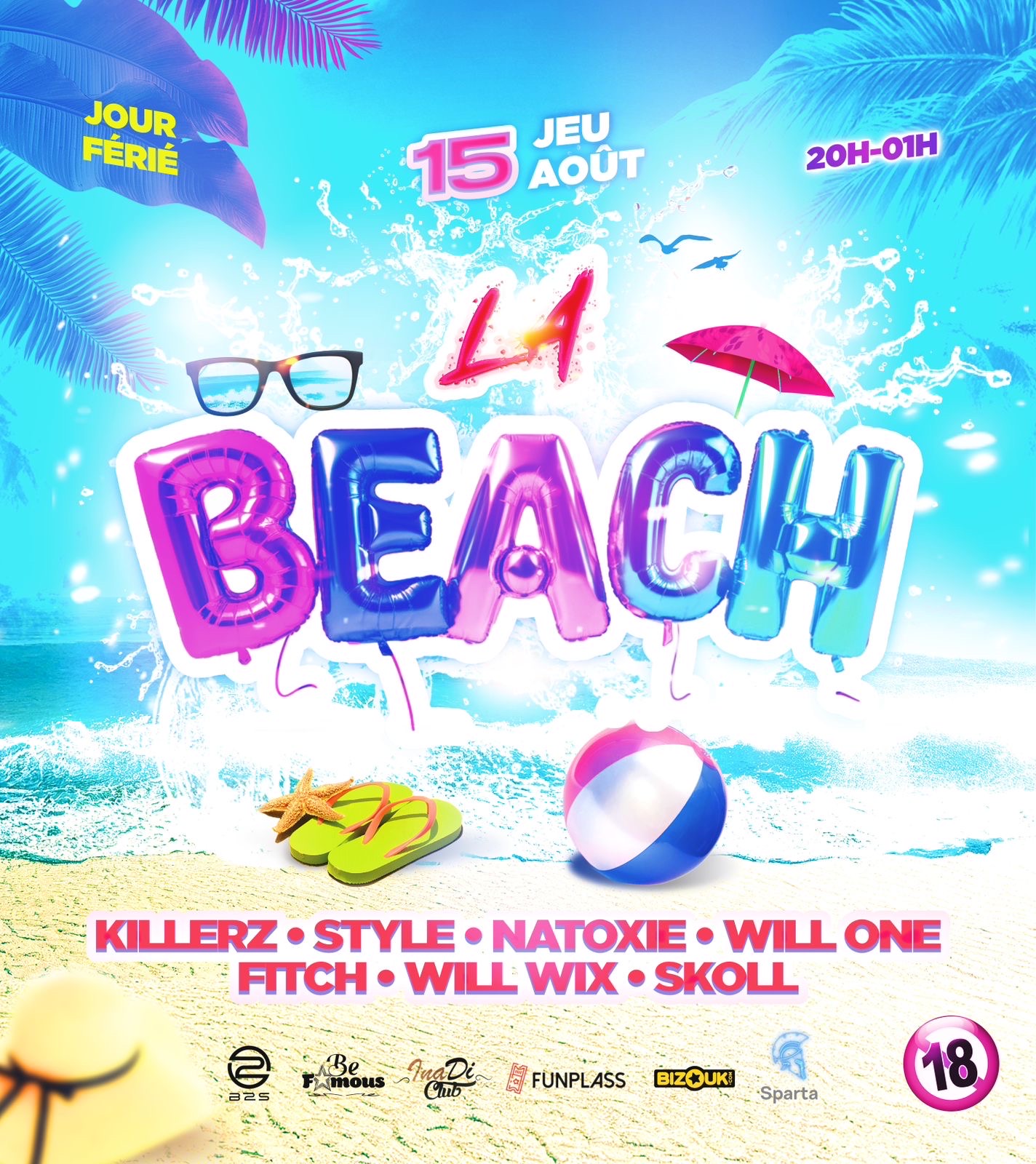 ☀️ *LA BEACH* ☀️🌴 #Acte2 🗒️ *VENDREDI 15 Août (jour férié)* 🕐 *20H - 01h* 🥳 *Un Line-Up XXL Pour Un Événement XXL* 😎 🌺✨ *KILLERZ • STYLE • NATOXIE • WILL ONE • FITCH • WILL WIX* ✨🌸 *Dress Code : Beach Wear* 🚫 *PAS DE PISTOLET A EAU* 🚫 🎟️ *BILLETTERIE OPEN* ➡️ *BIZOUK :* ➡️ *SPARTA :* ⚠️ *ÉVÉNEMENT STRICTEMENT INTERDIT AUX MINEURS* ⚠️