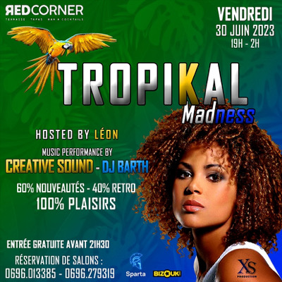 *📆 Ce VENDREDI 30 JUIN* la *TEAM XS 🕴️et LM events fwi 💥* te donnent rendez-vous au *📍REDCORNER* De 19h À 02h pour *🌴La TROPIKAL MADNESS☀️* _*⚡️Hosted by LÉON😉*_ 🎧 Aux platines pour vous faire voyager : *🥵Dj CREATIVE* *🤩Dj BARTH* _60% de nouveauté🔥 , 40% de rétro 💃🏾 pour 100% de plaisir 💫_ *🙌🏽un cocktail magic pour clôturer se super mois de juin⚡️* *Entrée GRATUITE*, Consommation OBLIGATOIRE 😏 Arrivez avant 21h30 pour profiter au MAX ! _🍽️Restauration disponible su...