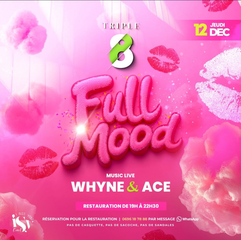 JEUDI 12 DÉCEMBRE ton rdv du jeudi de 18h30 à 00h!! Fullmood •••••••••••••••••••••••••• #OuvertureDesPortes 18h30 Restauration à table disponible de 18h30 à 21h30 puis snacking de 21h30 à 00h TRIPLE8 (ex Bout du Monde) TENUES ET ESPRITS CORRECTS EXIGÉS; LA DIRECTION SE RÉSERVE LE DROIT D'ENTREE. Il est conseillé d'arriver tôt car une invitation ne garantit pas le droit d'accès et privilégier le covoiturage