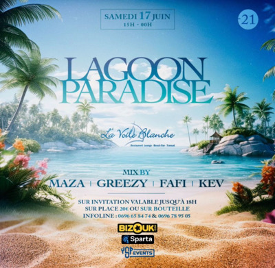 Venez vivre une expérience envoûtante lors de notre garden, Lagoon Paradise ! Le samedi 17 juin de 15h à minuit, nous vous invitons à rejoindre le magnifique cadre de La Voile Blanche pour une garden mémorable sous les étoiles. Lagoon Paradise est conçu pour vous offrir une escapade musicale incomparable. Nous sommes fiers de vous présenter une sélection de DJs talentueux qui transformeront cette soirée en une véritable féerie musicale. Les platines seront animées par Maza, Greezy, Kev et Fafi...