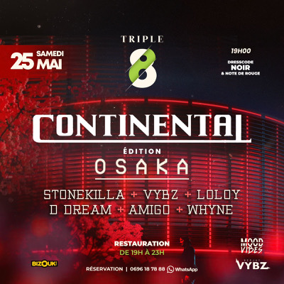 LE CONTINENTAL ED OSAKA LE SAMEDI 25 MAI à partir de 19H dans un TRIPLE 8 redécoré pour l’occasion