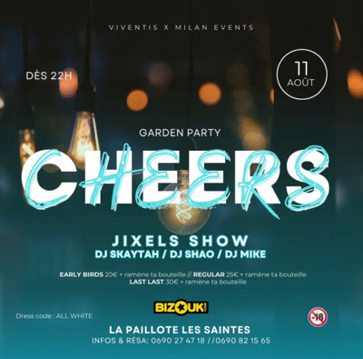 SAVE THE DATE 🥳 N'oublies pas ton rendez-vous du 11 août à la Cheers * aux Saintes. La Garden Party inoubliable de l'été avec Dj Skaytah, Dj Shao, Di Mike et un show exceptionnel de Jixels & LI Tu connais la chanson: « Tout ce qui ce passe aux saintes reste aux saintes » Alors ne tardes pas prends ta prévente et achètes ton billet de bateau🔥🛥️