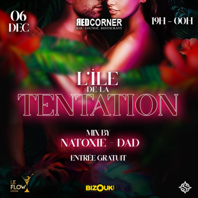 Le flow Te donne rendez-vous dans ton bar préféré Le RED CORNER L’île de la tentation Tu es seul mal accompagné tu cherches juste une nuit de folie À toi de voir C’est ton choix Alors à vous de jouer, messieurs et Mesdames Le rendez-vous Des mercredis Un After work Revisité Une coupe sera offert. Pour la ou le plus chaud de la soirée Donc arriver tôt dJ Natoxie et dj Dad Pour t’ambiancer Un bracelet te seras proposé, pour défi...